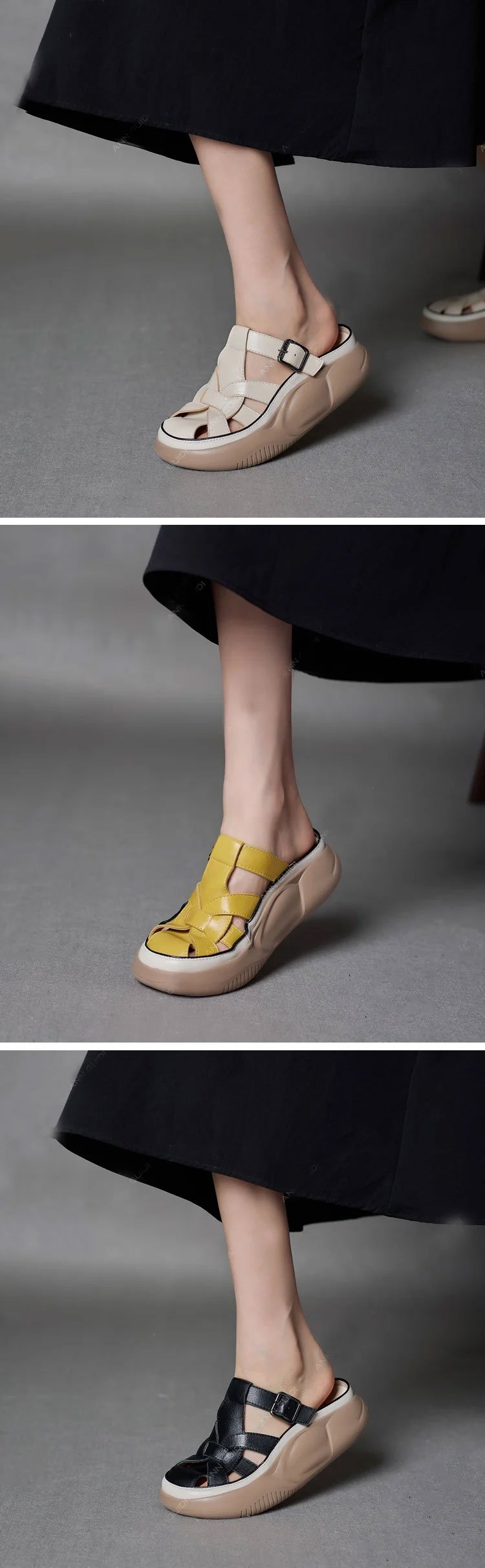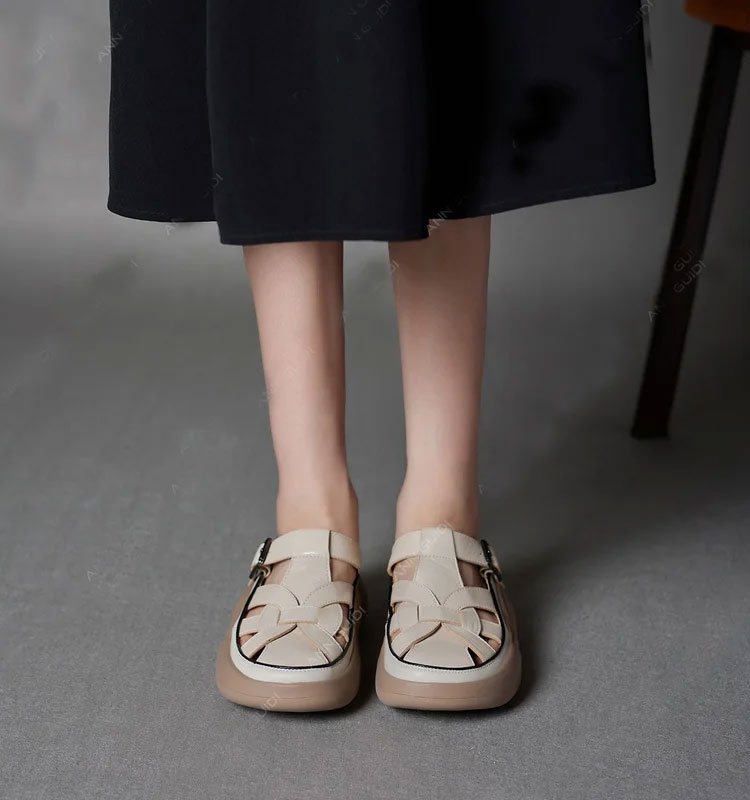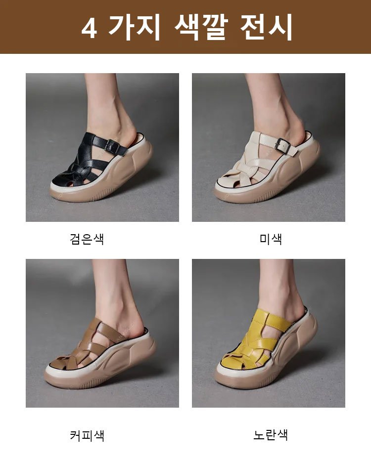 복고 통굽 스트랩 슬리퍼형 샌들 여성